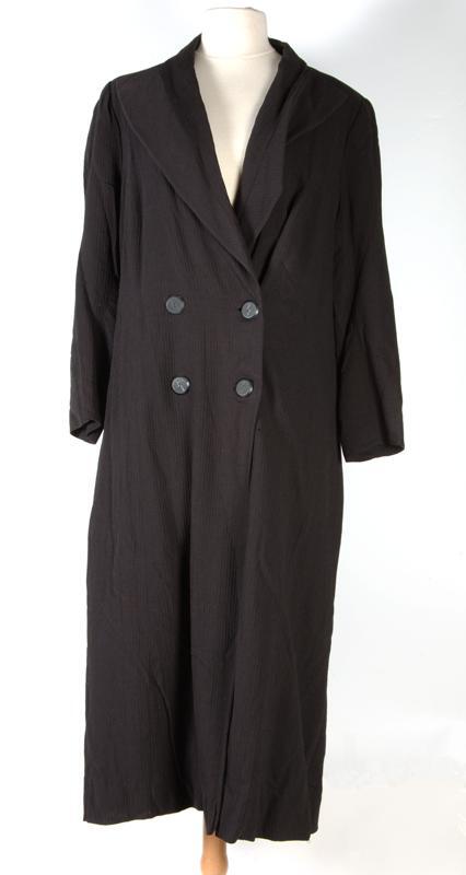 Zomerjas van zwart crèpe-achtige wol met ingeweven lengtestreep