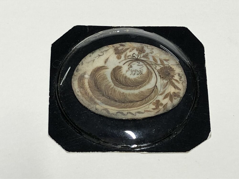 Medaillonplaat van been, hierop een voorstelling van een rond gaande gestrikte toef met bloemen, blaadjes en 3 veerachtige bladeren