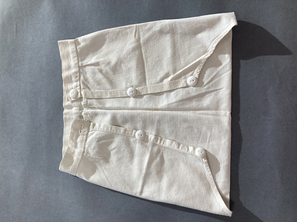 Luierbroekje van wit katoen, met driehoekige knoopsluiting