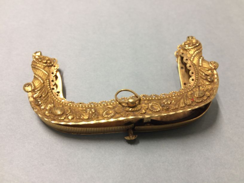 Gouden beursbeugel met gegoten en gegraveerde bloemdecoratie met hoorn des overvloeds