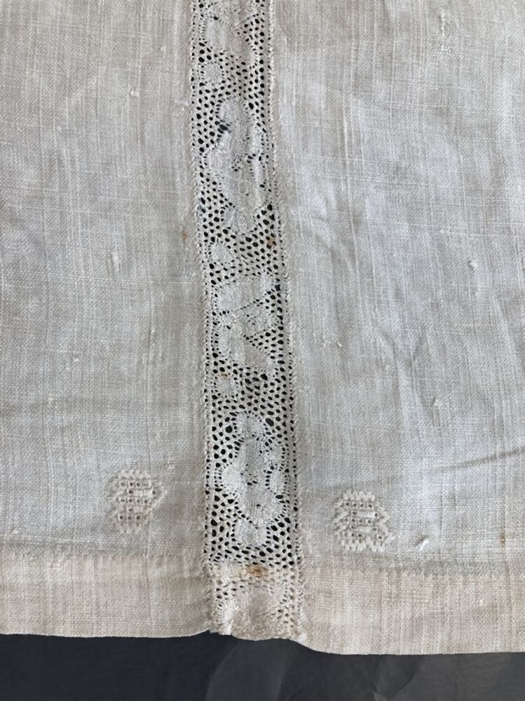Laken met tussenzetsel van Hollandse kloskant, gemerkt PR