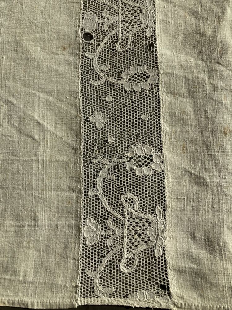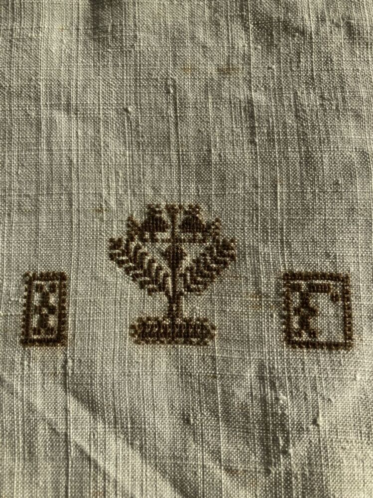 Laken met dwars tussenzetsel van Antwerps pottekant, stijve bloempotten, gemerkt in zwart-bruin I.F. aan weerskanten van een levensboom