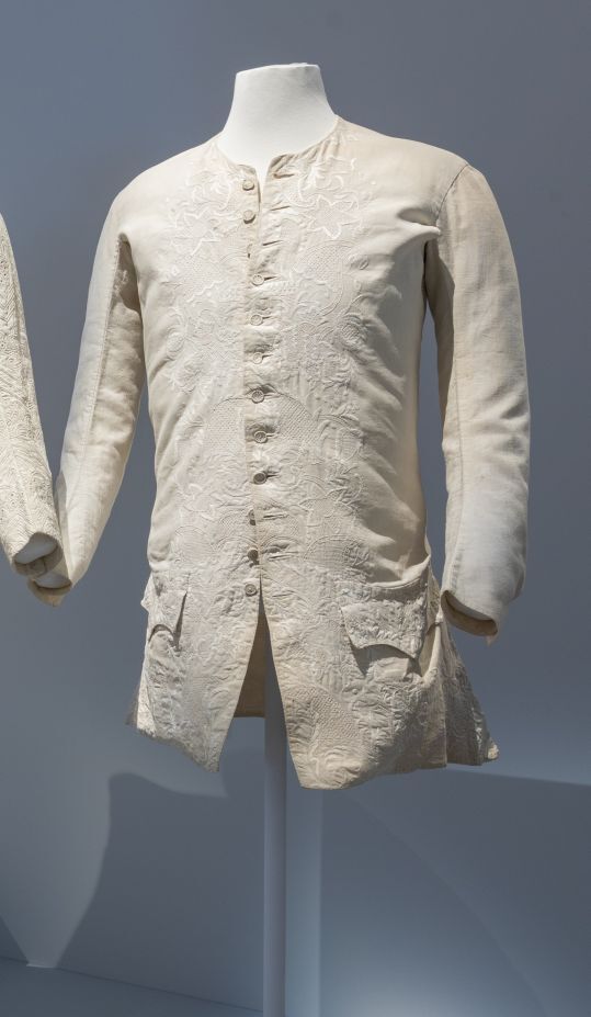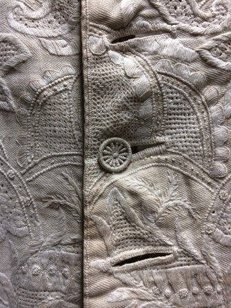 vest of kamizool van wit linnen, geborduurd in point clair techniek