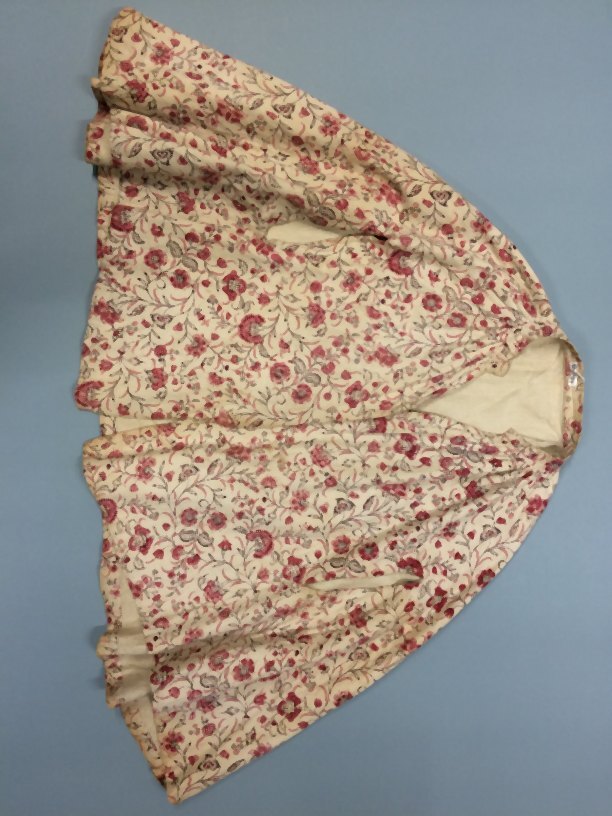 Bedrukt katoenen Hindeloper skooldermantel, motieven op witte grond en de contour zwart en rood