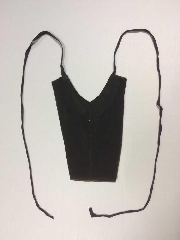 Zwart frontje met platliggende kraag en naad met knoopje middenvoor van kunstzijde