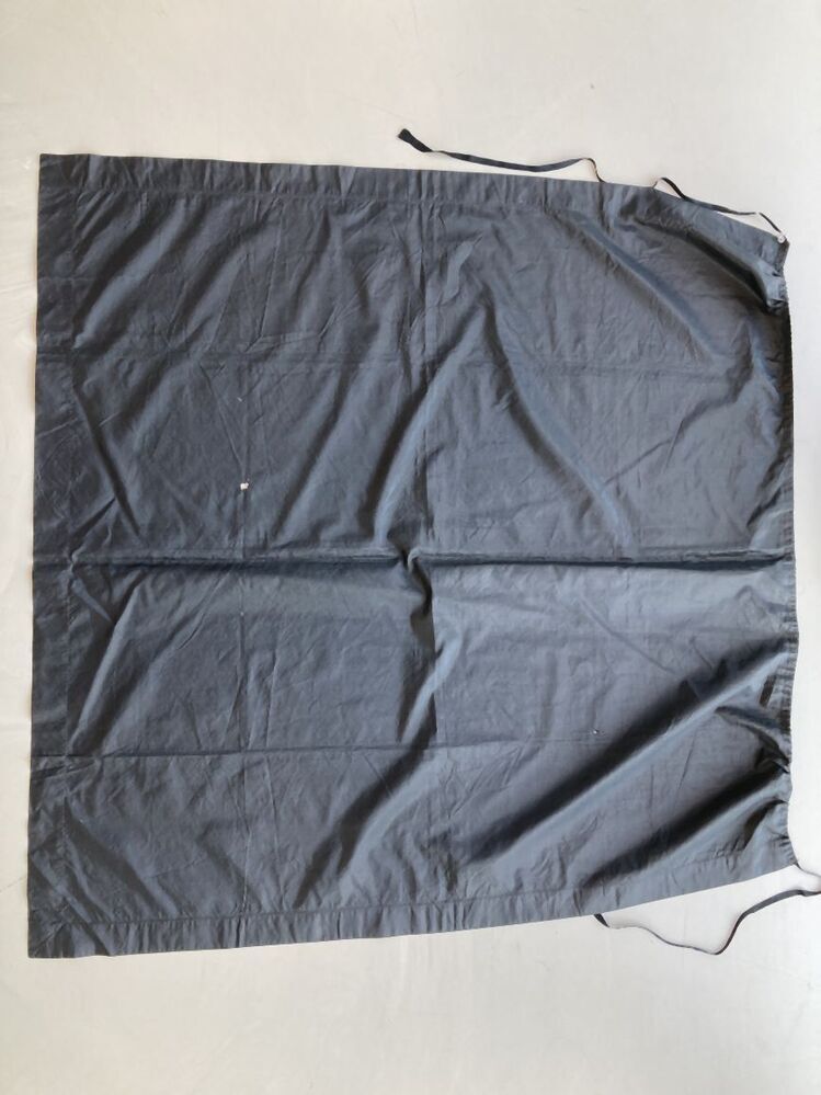 Schort van zwarte taftzijde met sleuf waadoor veterband is geregen.