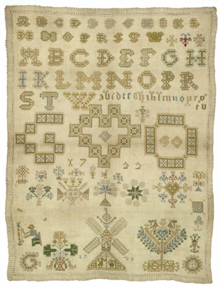 Merkletterlap, onaf, met twee schepen, gemerkt T.M. 1721-1724