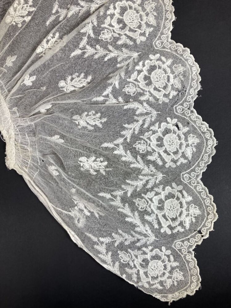 Kraag van gerimpelde strook geschulpte machinaal geborduurde tule