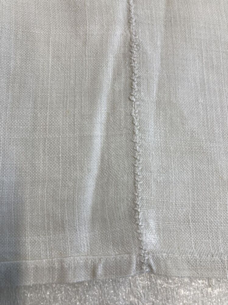 Linnen laken met verbleekt rood kruissteekborduursel, met bloempot en TD 1875,