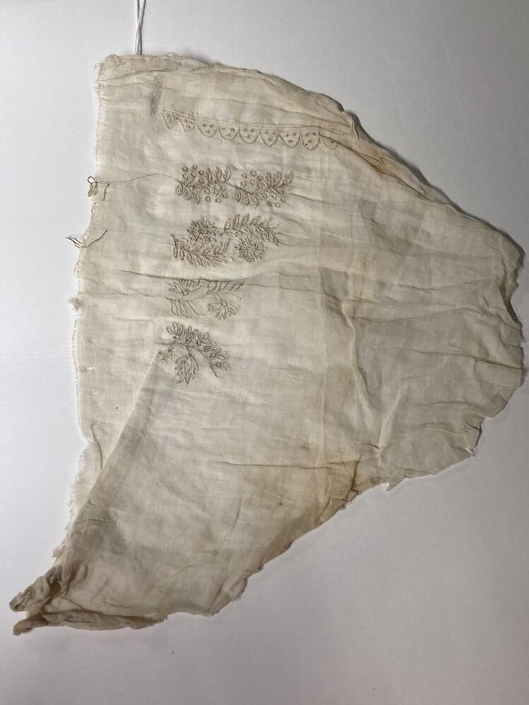 Proefstuk tamboereerwerk op neteldoek, onderdeel van groep van twaalf