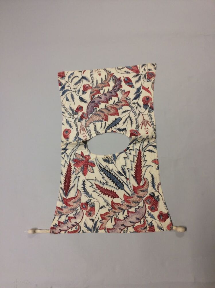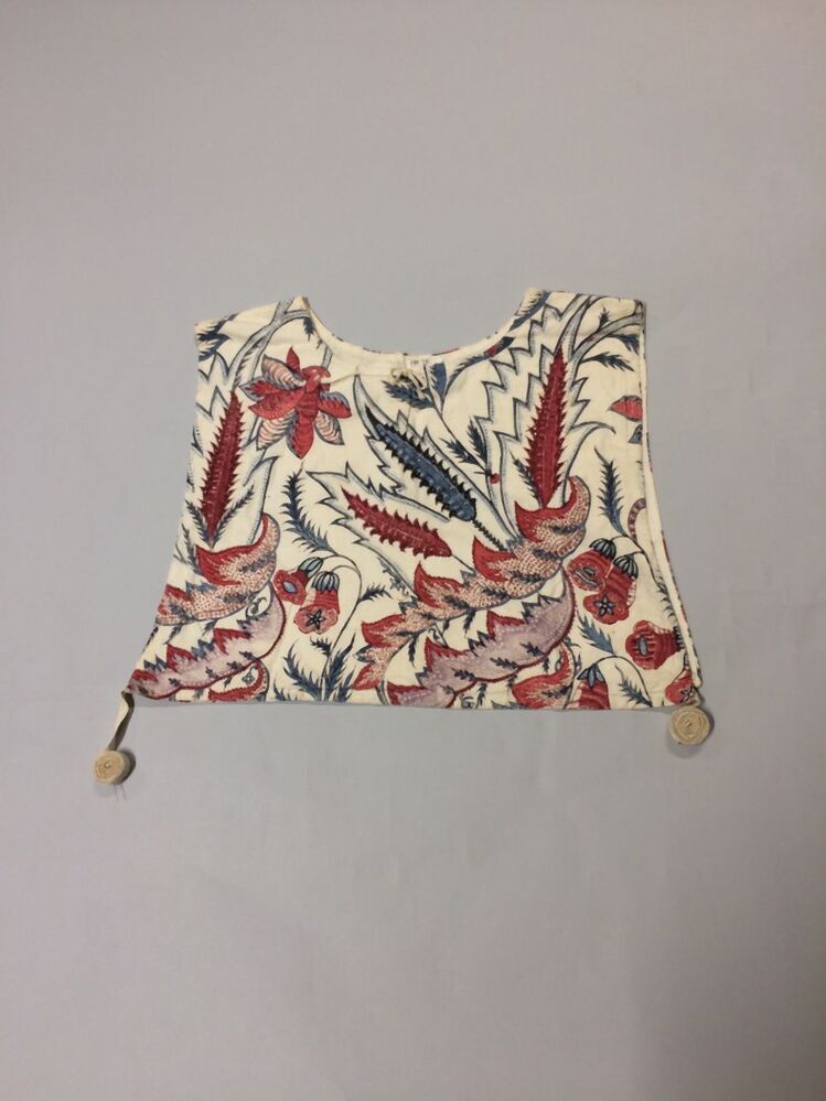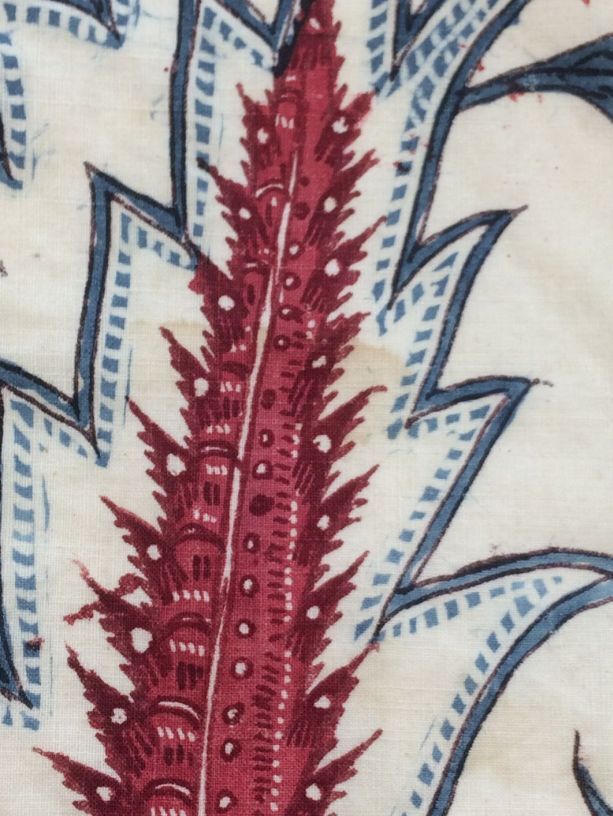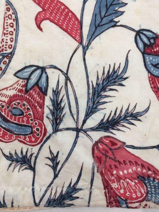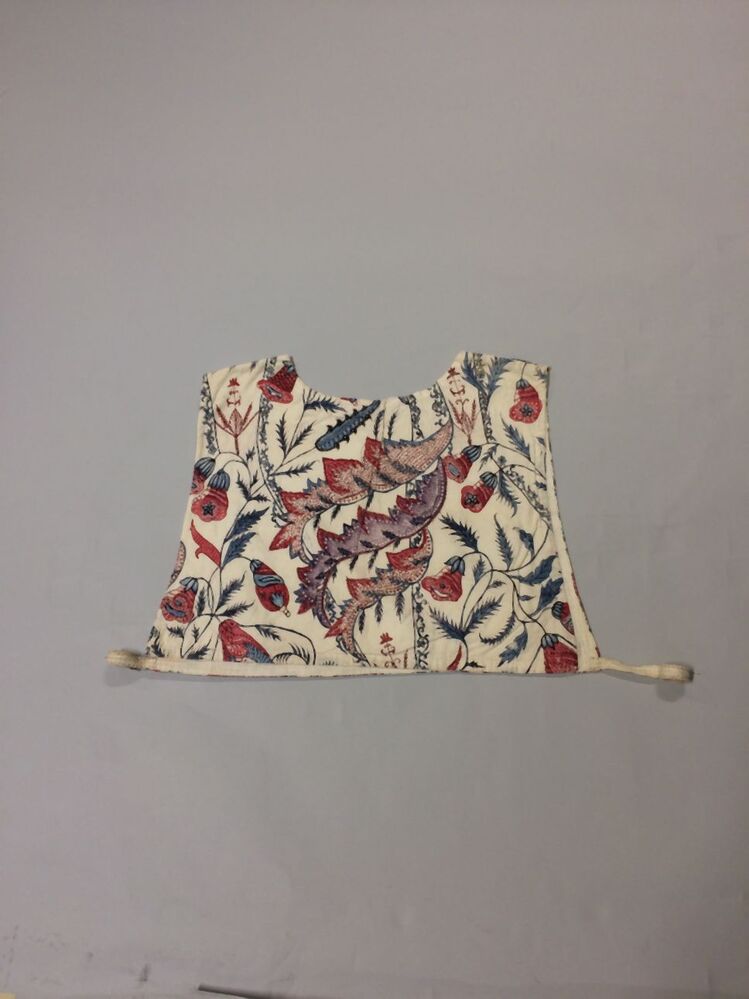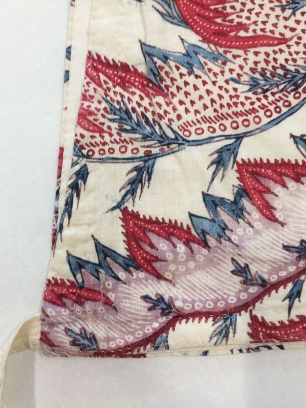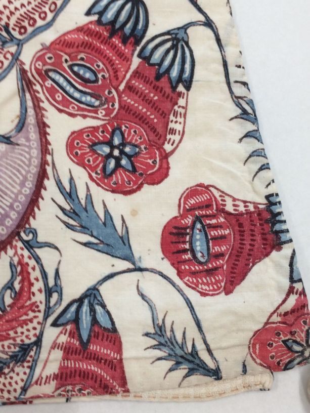 Sitsen vrouwenkroplap ofwel onderst, met diagonale grote bizarre bladeren op witte grond