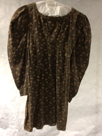 Jak met schapenboutmouwen van bedrukt katoen met bruine grond, florale stipmotiven en geelbruine bloemetjes