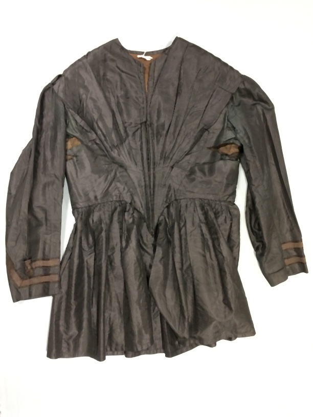 Schootjak van zwarte taftzijde met lange mouwen, afgezet met moiréband
