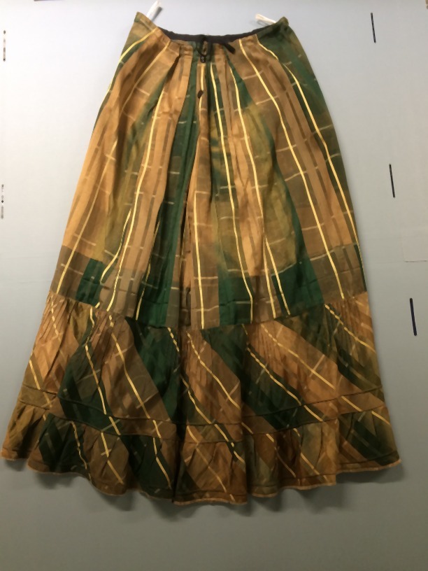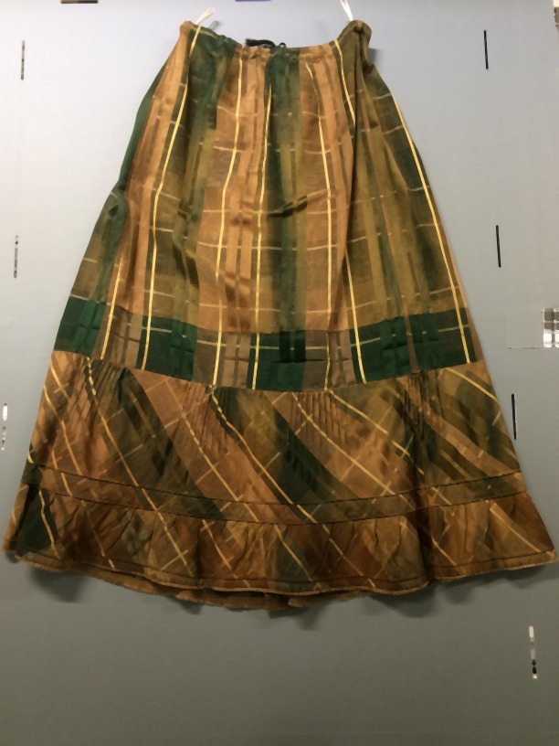 Onderrok, geruit katoen-mohair, groen, beige, bruin, met wijde strook langs zoom