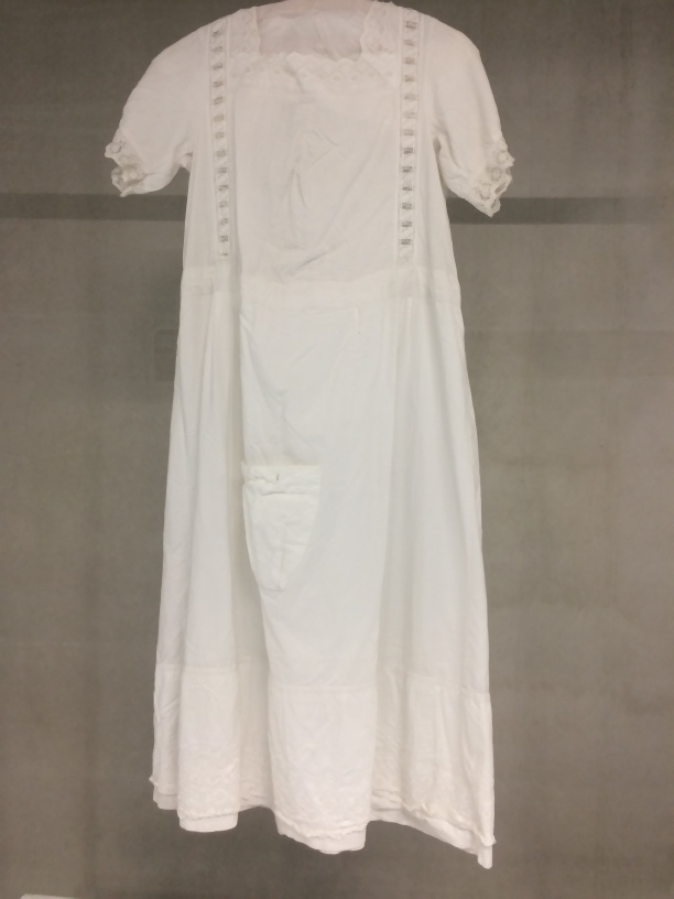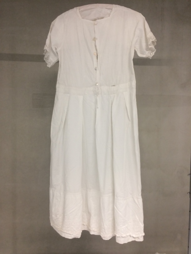 Onderjurk van wit katoen met diverse soorten broderie, lijf, mouwen, rok, onderdeel van groep van vier onderjurken