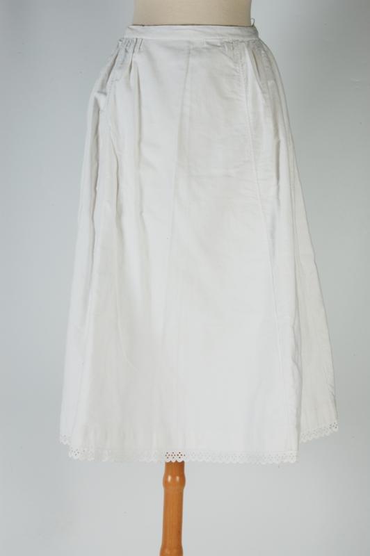 Onderrok, wit keperkatoen met Zwitsers broderie langs zoom