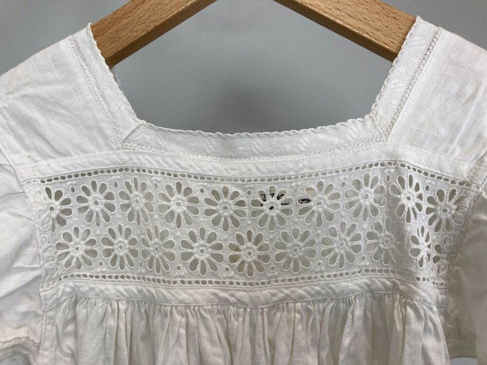 Boezelaar van wit katoen met machinaal broderie