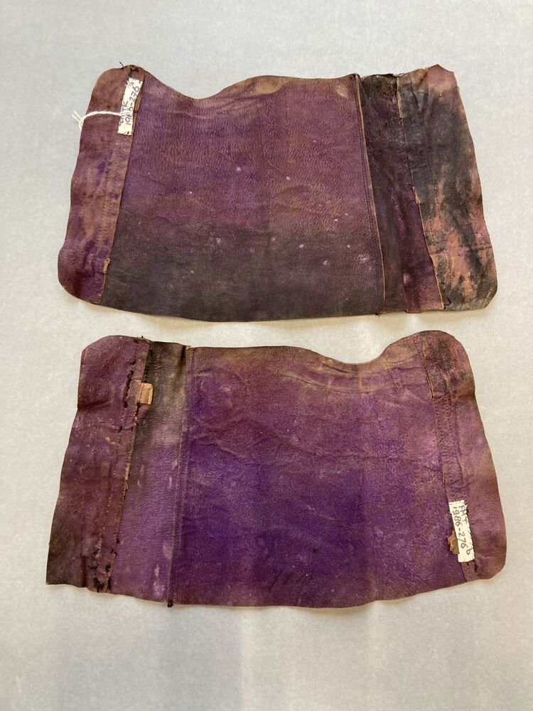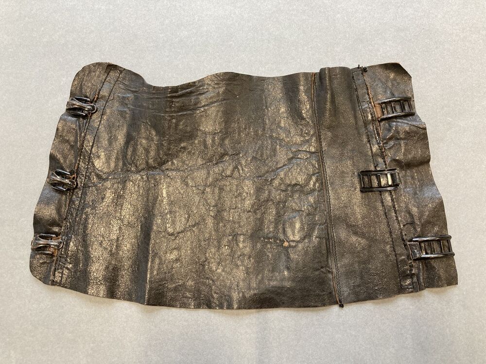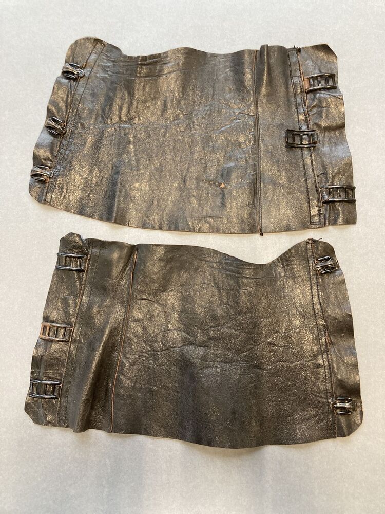 Paar zwart leren scheenbeschermers met gespsluiting