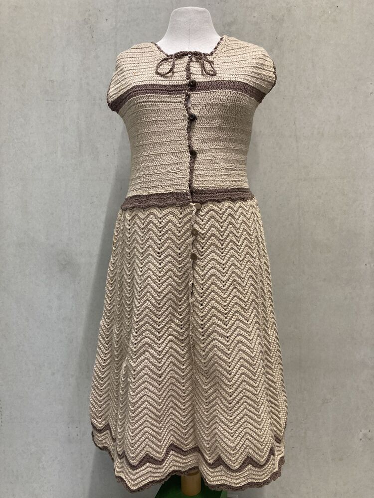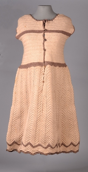 Onderjurk gehaakt van beige katoen met bruine strepen