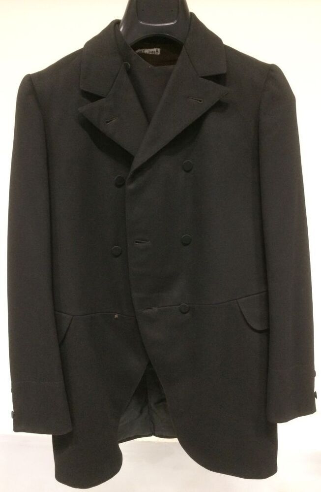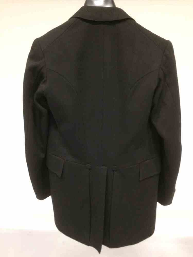 Zwart wollen jas met ingeweven diagonaal, onderdeel van driedelig kostuum