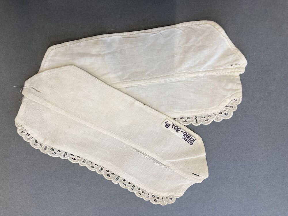Paar manchetten afgezet met handgeborduurde broderie