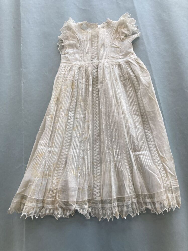 Doop- of draagjurkje van wit katoenen batist met tule doorstopwerk
