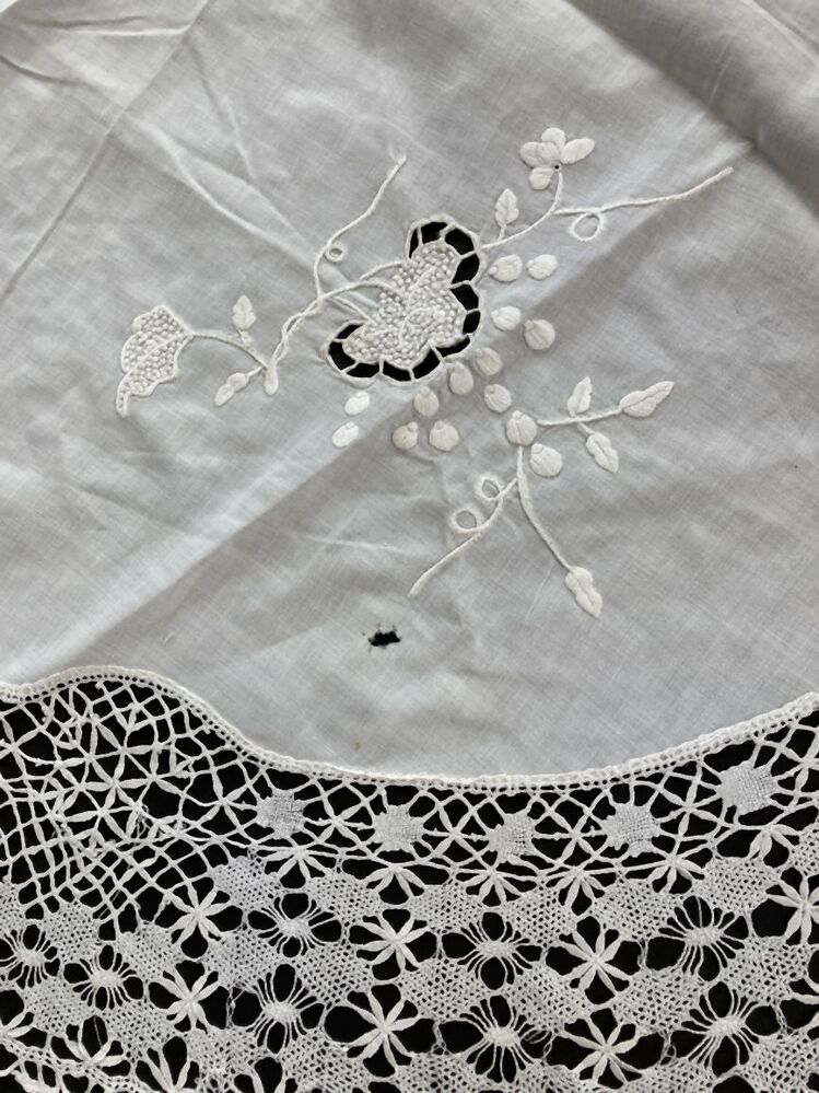 Tafelkleed, wit katoen met richelieu en witborduursel met brede rand van kloskant