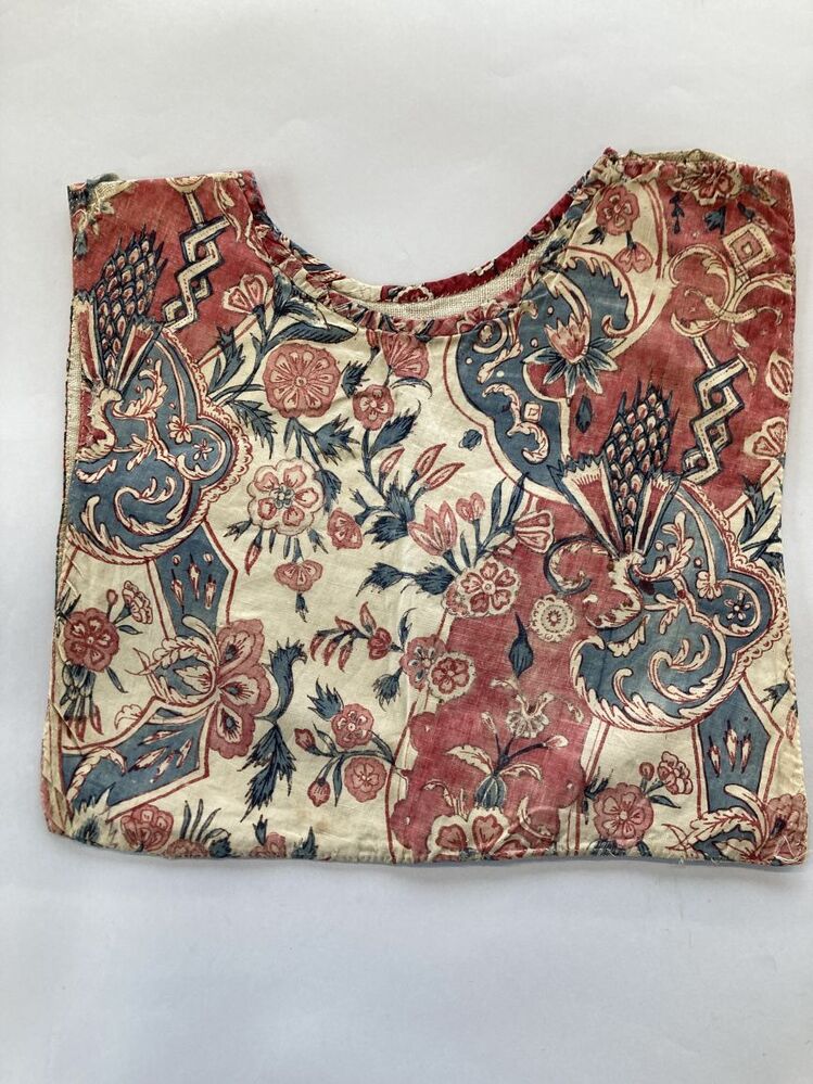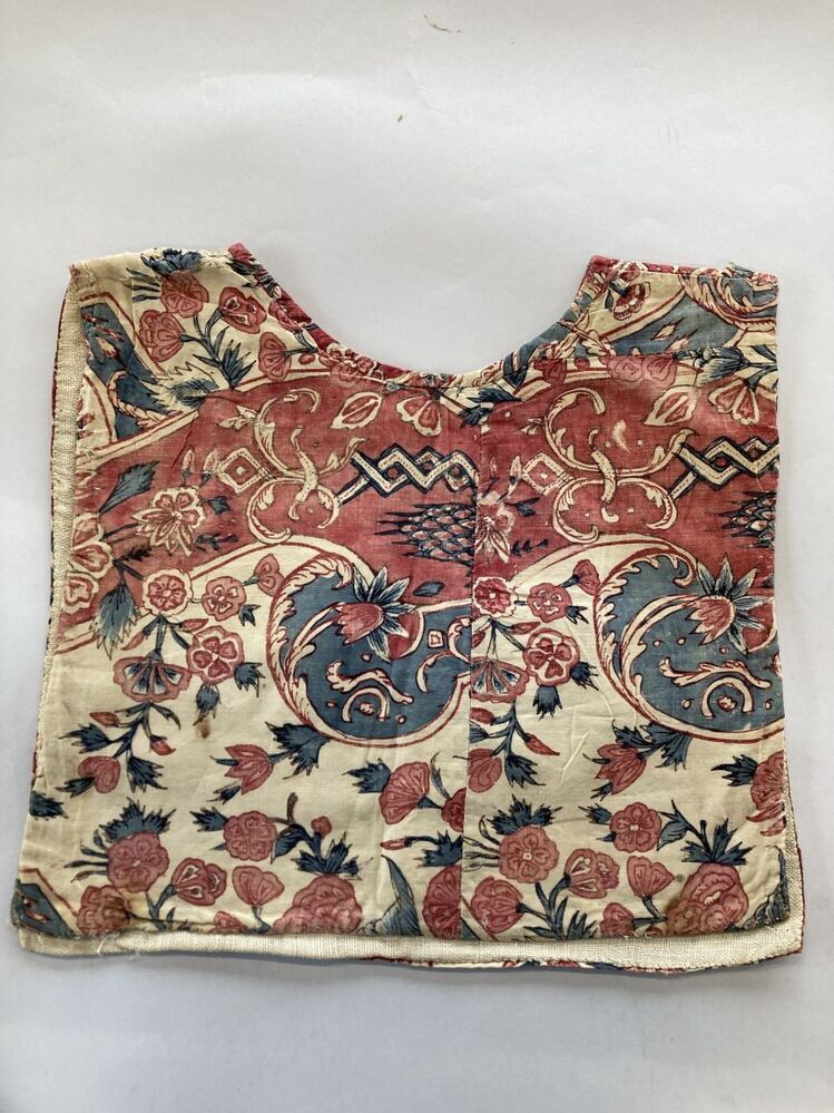 Sitsen vrouwenkroplap ofwel onderst, met om elkaar slingerende brede randen op witte grond