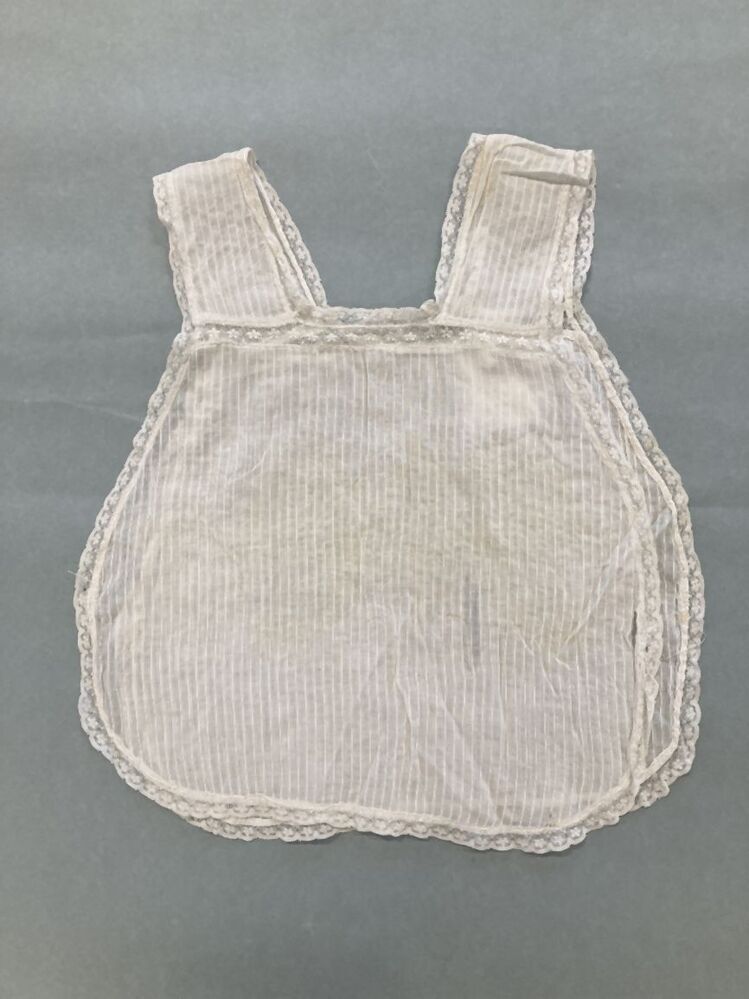 Schortje met ingeweven streep afgezet met Valencienne-kantje