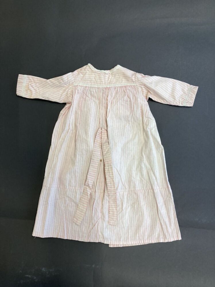 Nachthemd, roze bedrukt katoen, gestreept, afgezet met kant