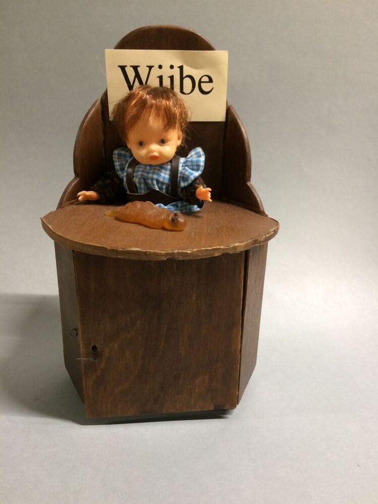 Zoon Wiebe van Afke's Tiental zittend op een kakstoel