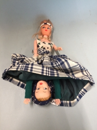 Dubbele barbiepop, zelf aan elkaar gemaakt