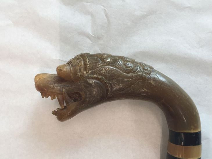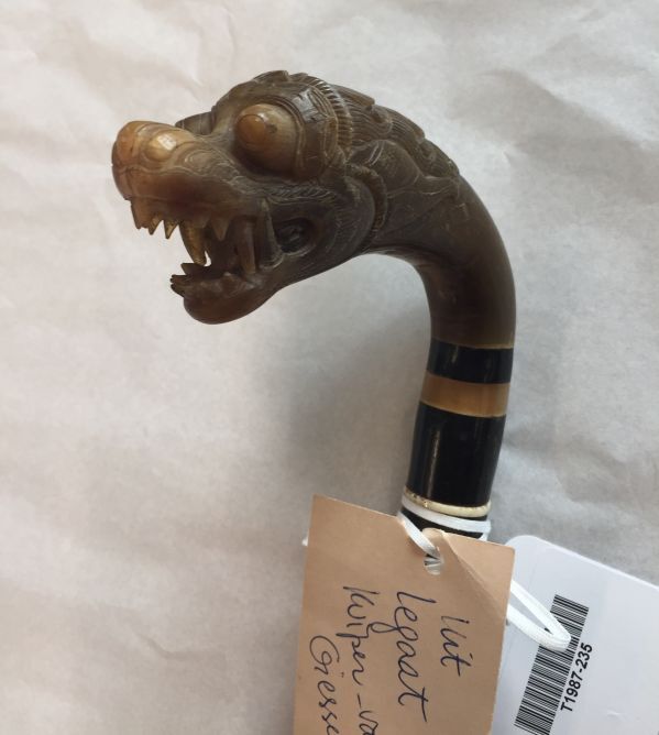 Wandelstok met gesneden drakenkop uit been of hoorn