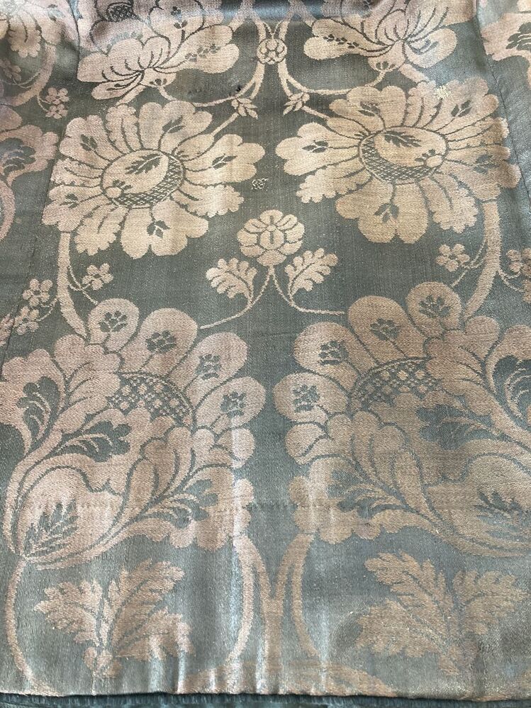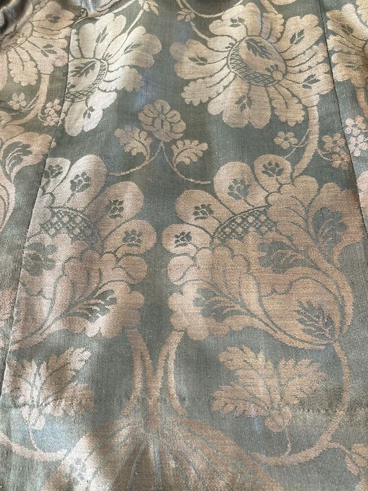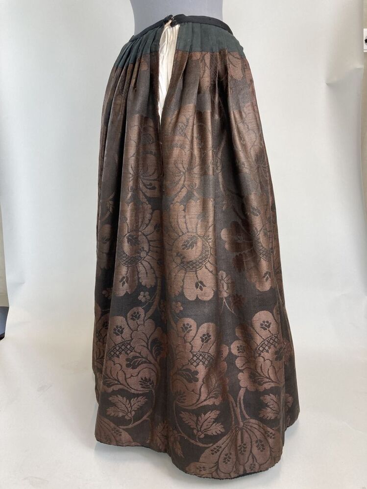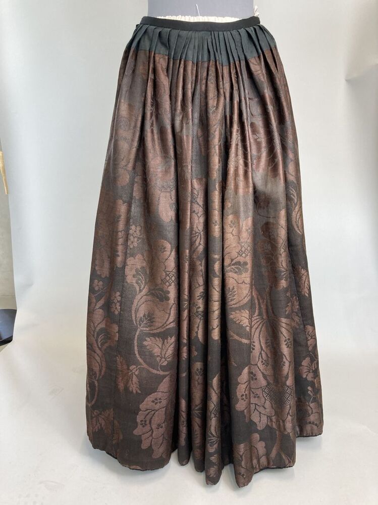 Bruin-zwarte wollen damasten rok met groot symmetrisch bloempatroon