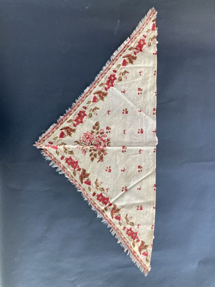 Wollen tipdoek, met crème grond, bedrukt met bloemenrand en strooimotief