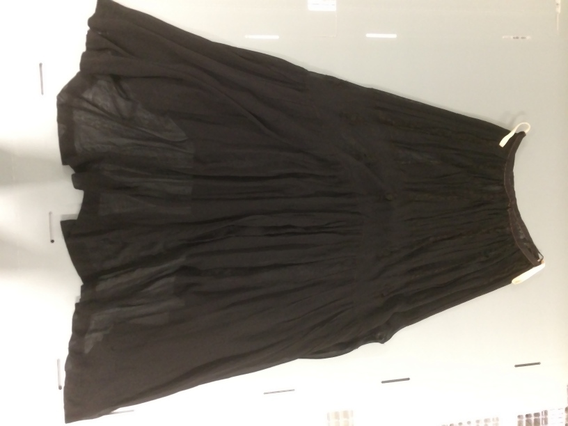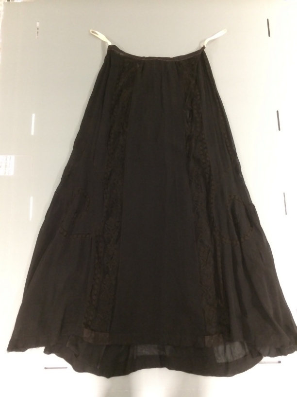 Rok van zwart wollen batist en machinale kant, gerend, met sleepje
