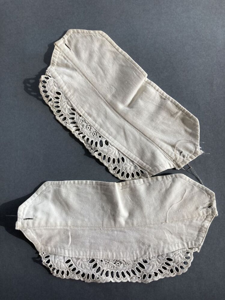 Paar manchetten van wit katoen met symmetrische handgeborduurde broderie strook langs opslag