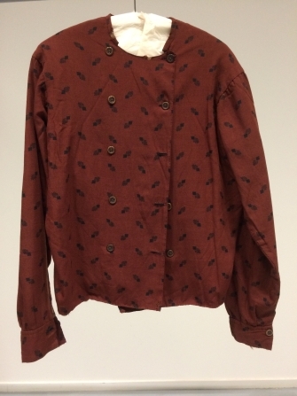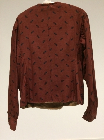 Baeitje van bruin-rood kamgaren met zwarte opdruk, strooimotief van ruit met zeven stralen