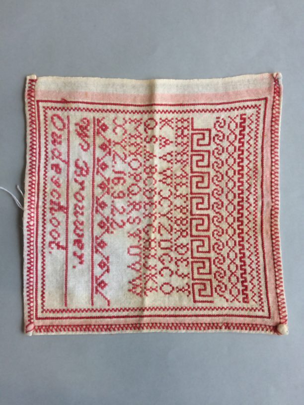 Letterlap met daarop onder andere een lopende hond, W. Brouwer 13. Oudeschoot.