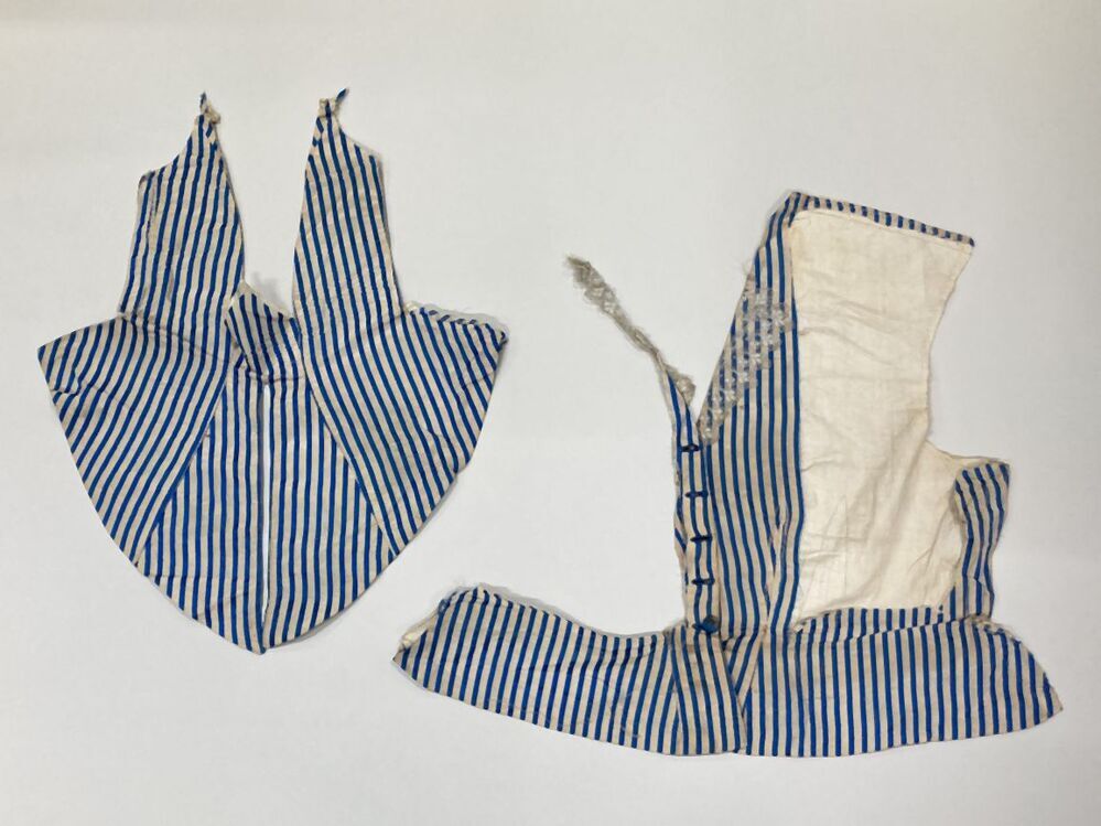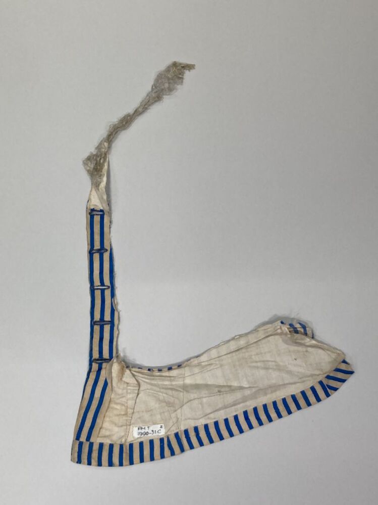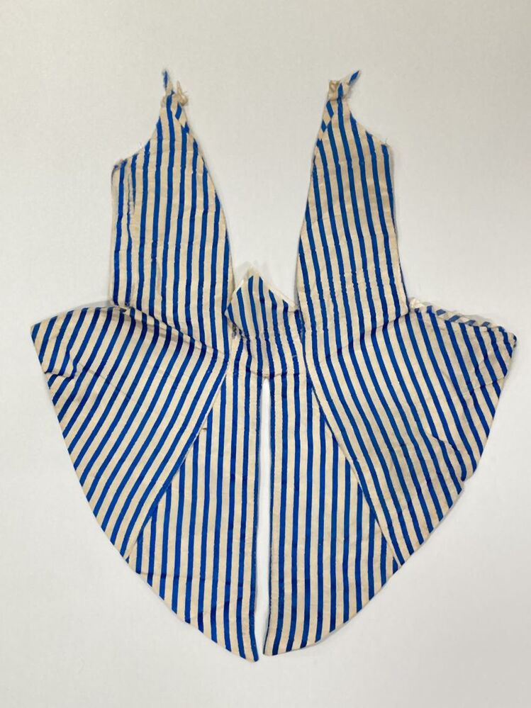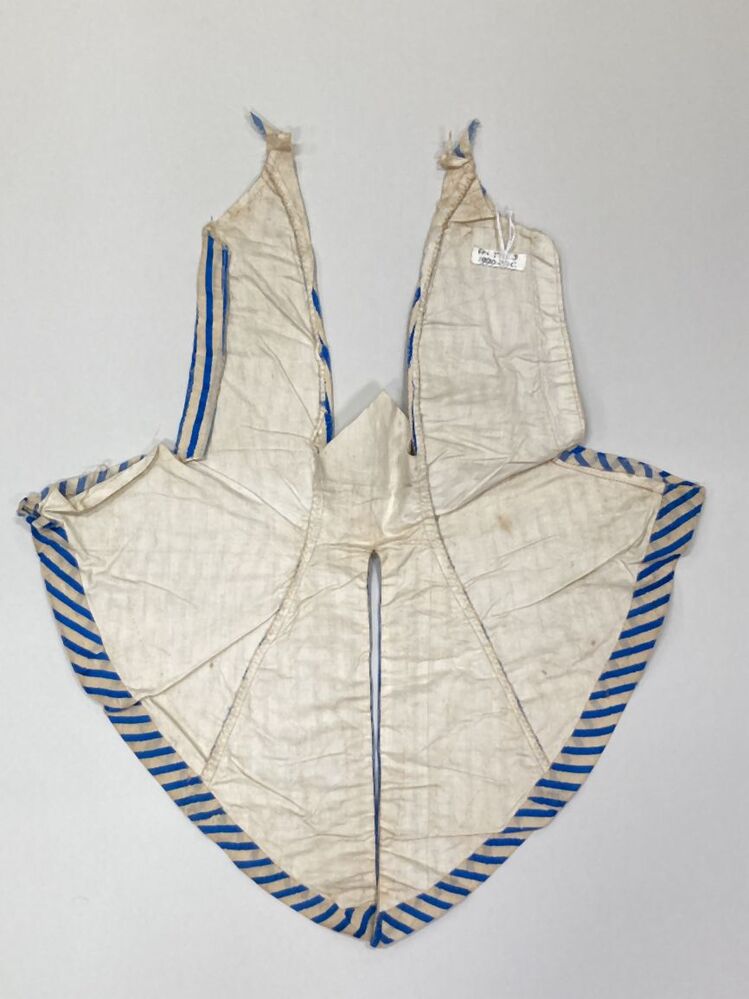 Fragment van vestje? bestaande uit drie delen, behorend bij blauw-wit zijden trouwkostuum