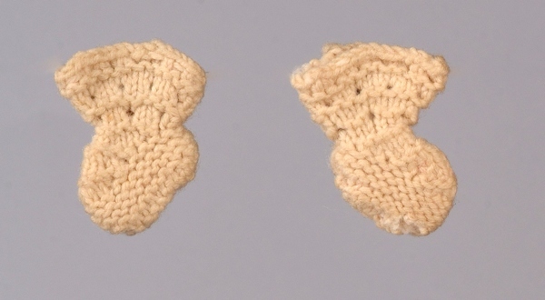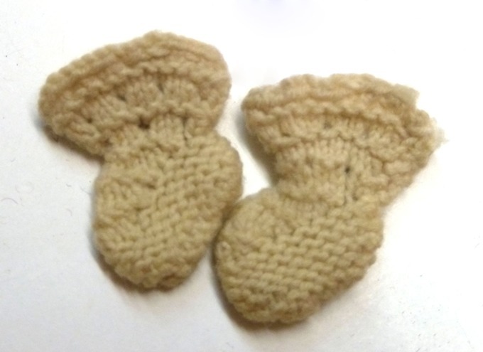 Miniatuur poppensokjes van crème wol