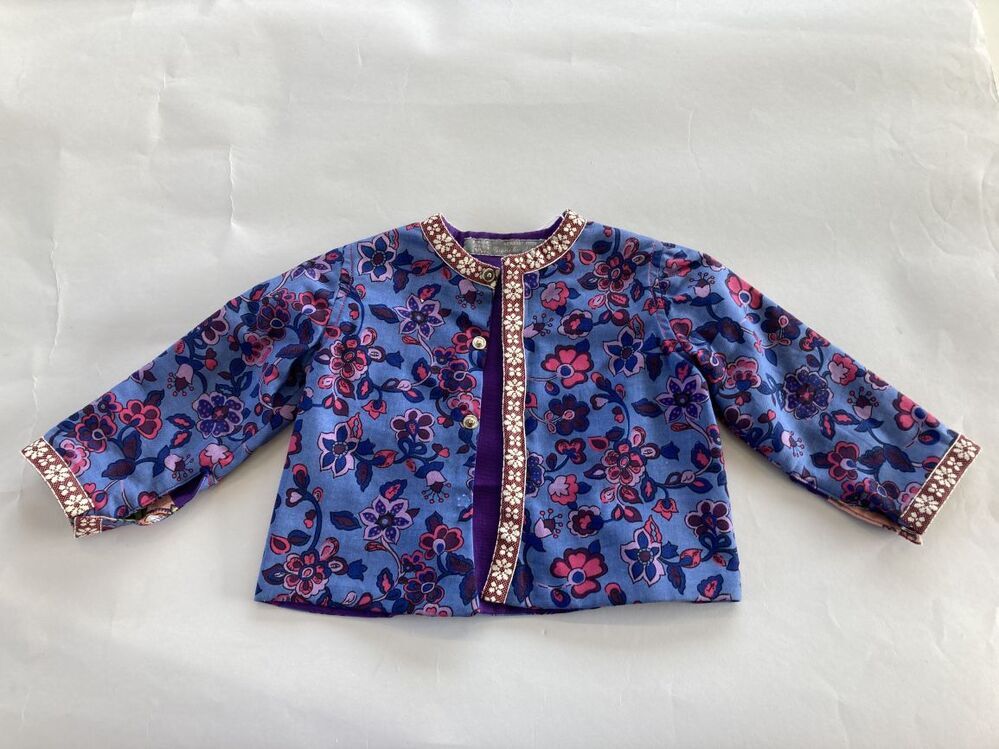 Kopie van een Hindelooper babyjakje of sliepwentke van blauw katoen met sits-achtig bloempatroon