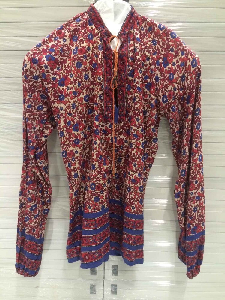Blouse van India-katoen, bedrukt met bloempatroon; met belletjes