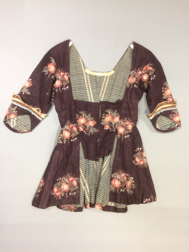 Vrouwenjak van Europees bedrukt katoen, nachtgrond, met zijden lintgarnering