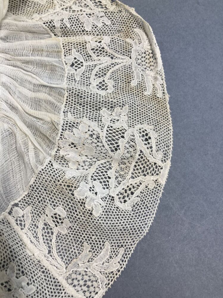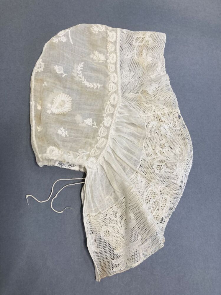 Trekmuts of hul met getamboereerde bol en strook van pottekant, voorloper van floddermuts