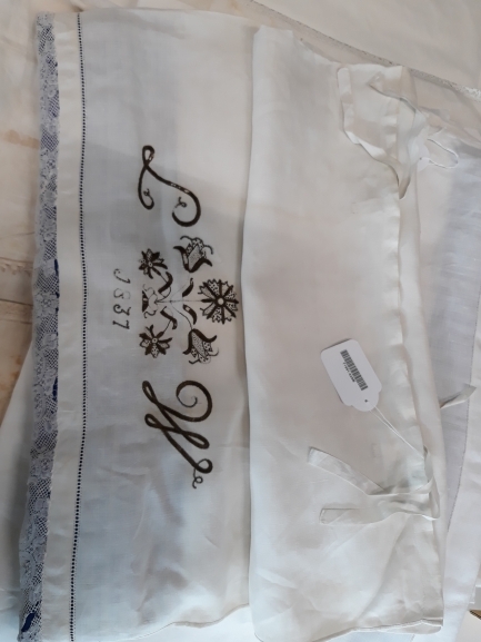 Linnen sloop met kloskant tussenzetsel, initialen LW 1837, zwart zijde-borduursel