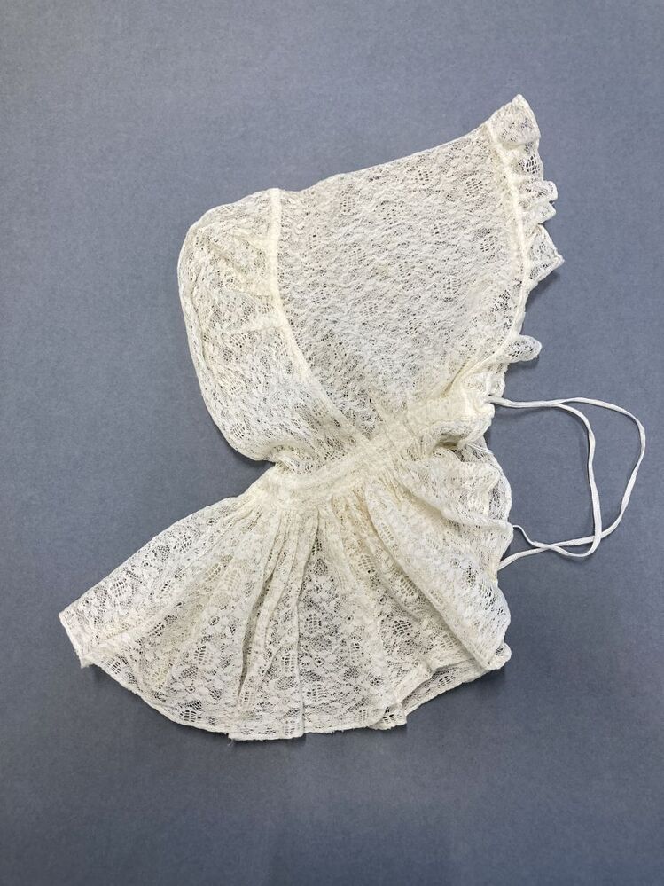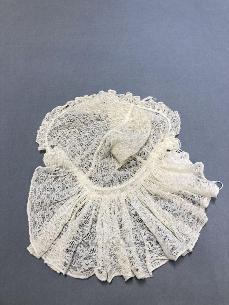 Kanten muts met hoge bol en nekstrook; fantasie klederdracht?