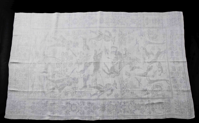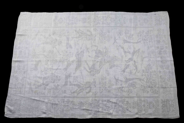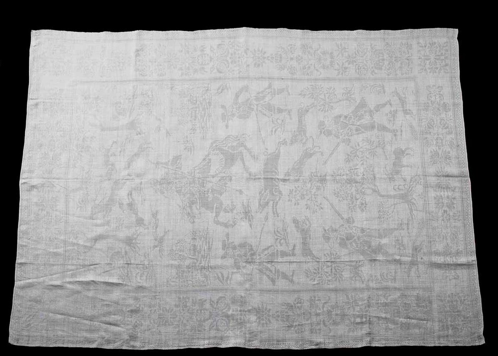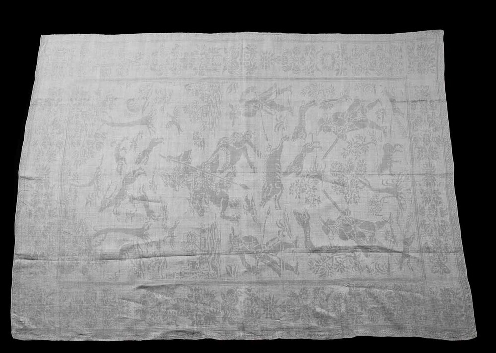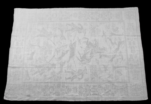 Servet van wit linnen damast met jachtscène, onderdeel van groep van vijf