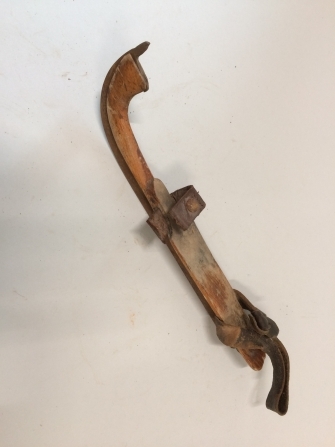 Enkele houten kinderschaats met leren banden