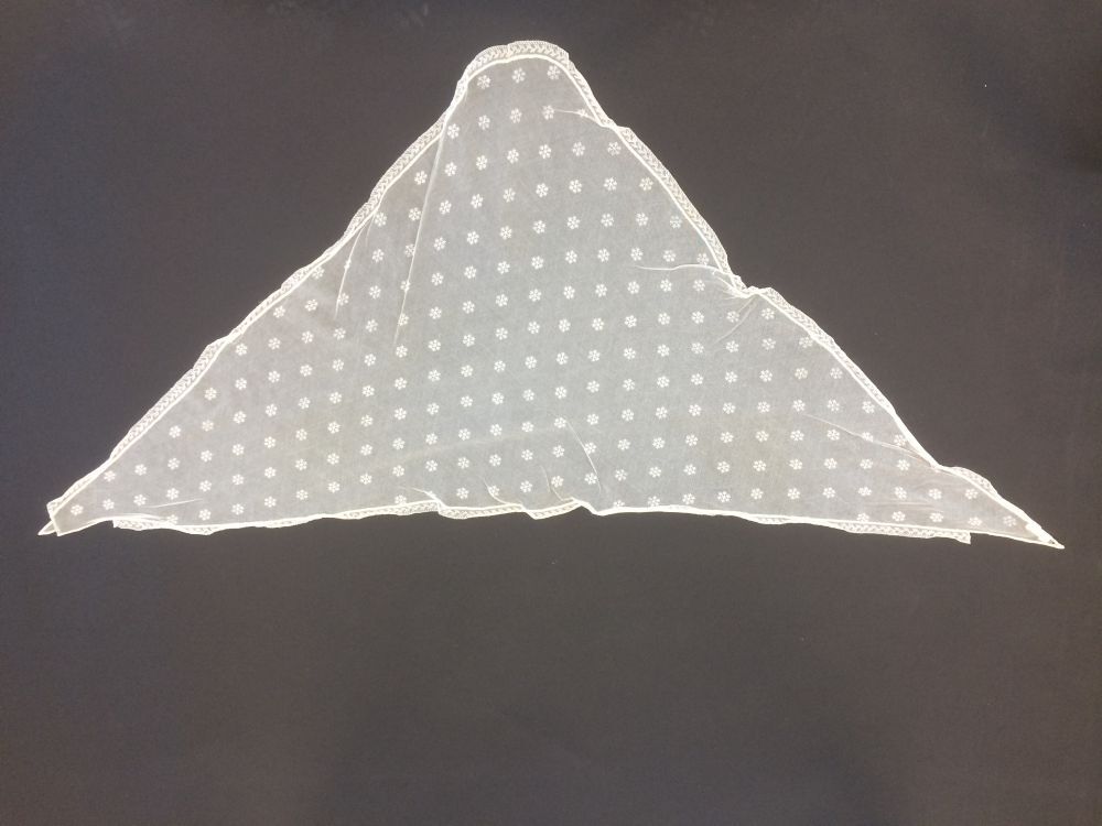 1) hals- of hoofddoek die met een tip (uiteinde) op de rug wordt vastgespeld. https://data.cultureelerfgoed.nl/term/id/cht/00c8692f-af9f-490f-b4ec-ec045b417f30